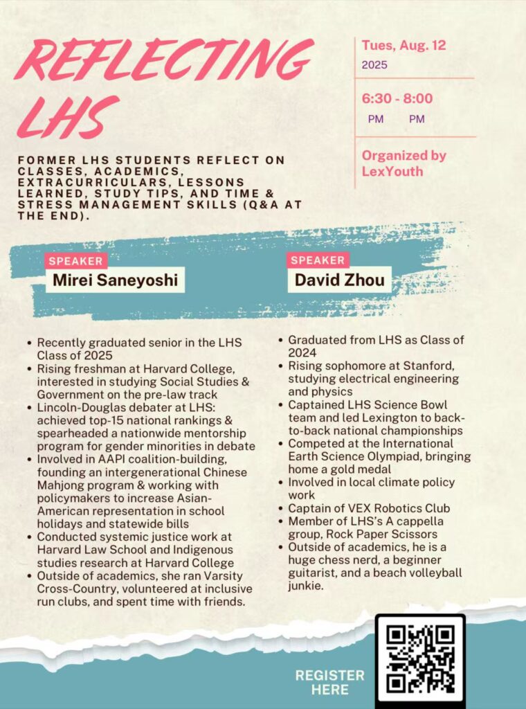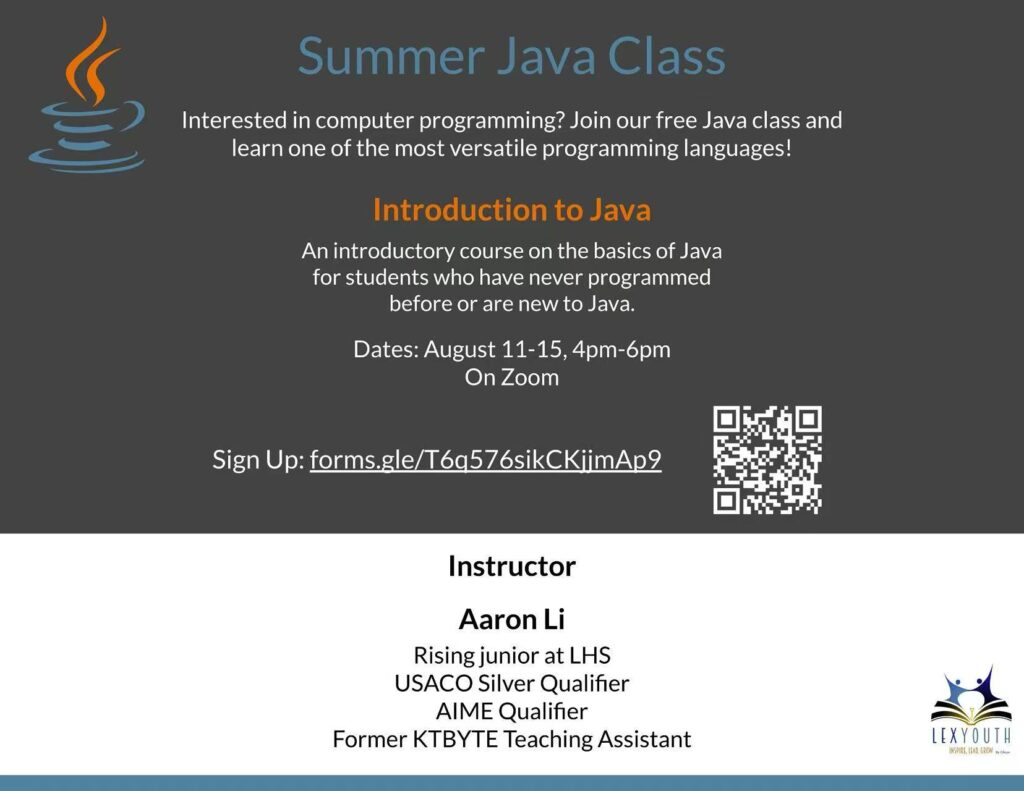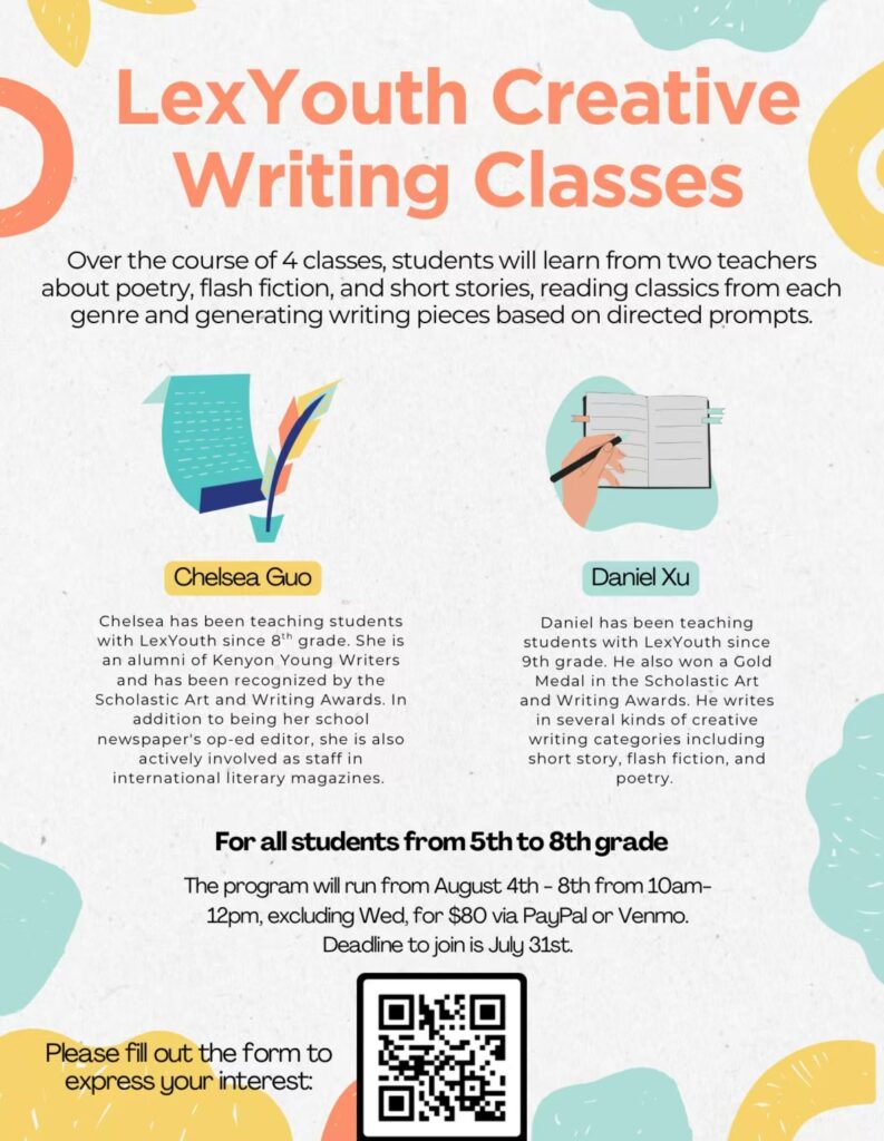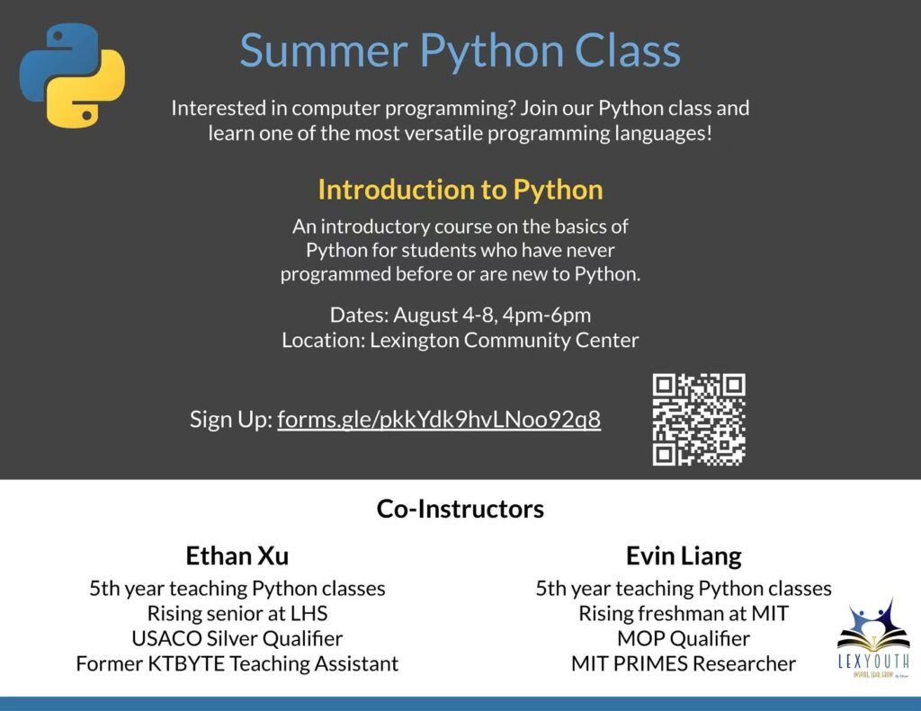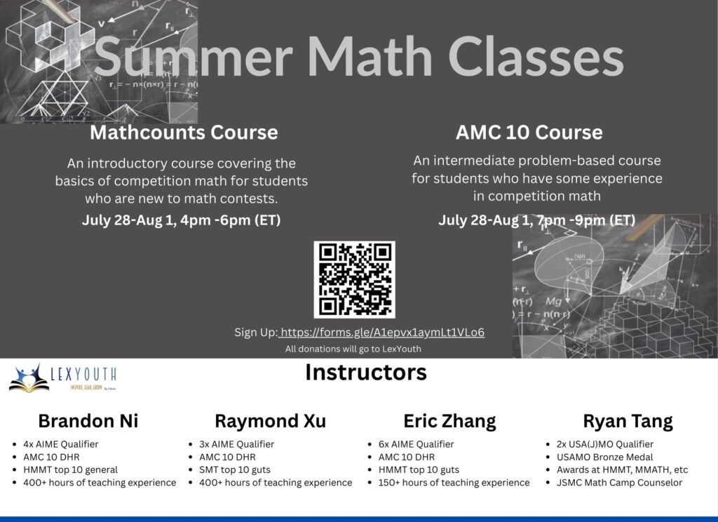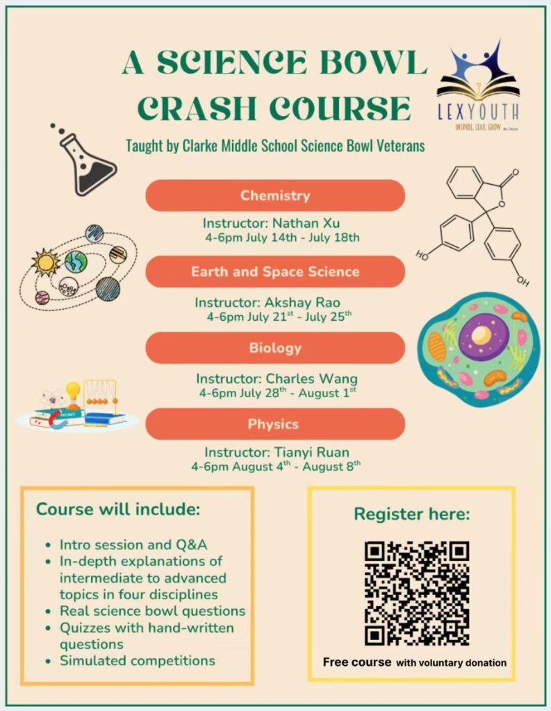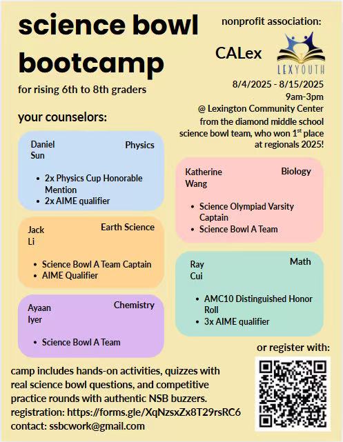 This past summer, several LexYouth members organized and led a variety of summer camps, covering topics like computer programming, Science Bowl preparation, mathematics, and creative writing. These camps gave students a chance to explore their interests, build new skills, and connect with peers who share similar passions.